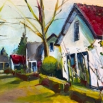 De mooiste straat van Zeist, aldus een van de aanwonenden. In ieder geval heel rustig dacht ik. Af en toe gezellig kletsende huisartsen in opleiding van (mijn vroegere) UMC Utrecht. Olieverf op paneel, 30x40, in naturel houten baklijst.